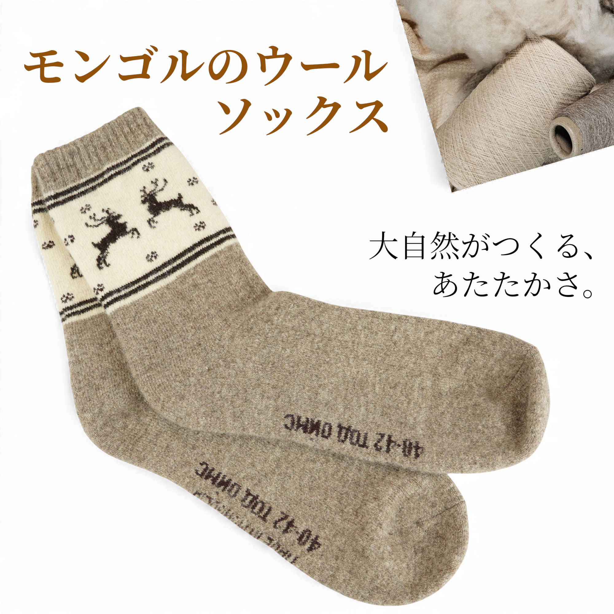 ・モンゴル産の高品質ウールを使用した、肌触りの良いソックスです。