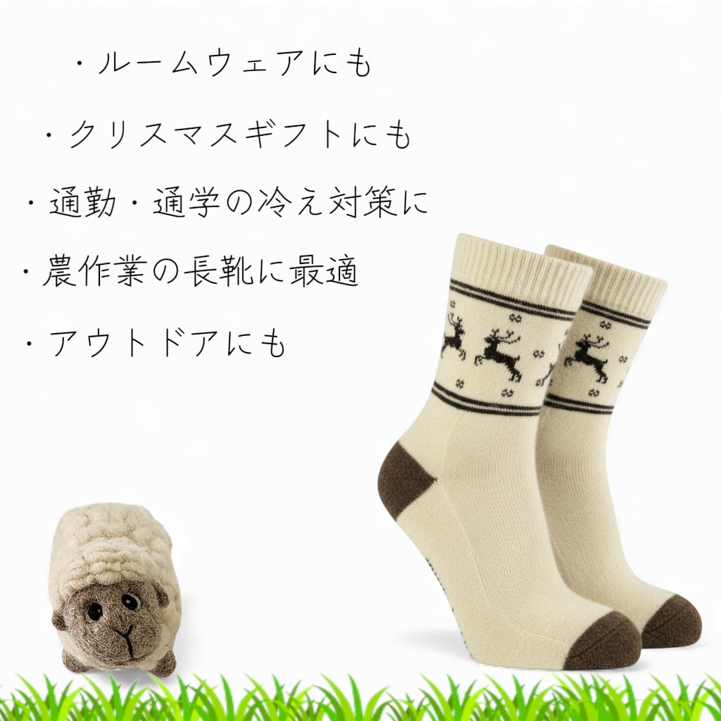 寒い冬にぴったりのモンゴルウールソックスで、温かな足元を実現しましょう。モンゴルの厳しい寒さを耐え抜くために作られたこのソックスは、寒さが厳しい地域で育まれた高品質のウールを使用しています。そのため、ブランケットのような心地よさを持ちながらも、洗濯後の型崩れが少なく、耐久性にも優れています。お家の中でリラックスする時はもちろん、アウトドアや農業など、アクティブなシーンでも大活躍するアイテムです。また、ユニークなデザインに加え、鹿の印があしらわれており、特別な贈り物としても最適です。クリスマスプレゼントやお世話になった方へのギフトにも喜ばれることでしょう。